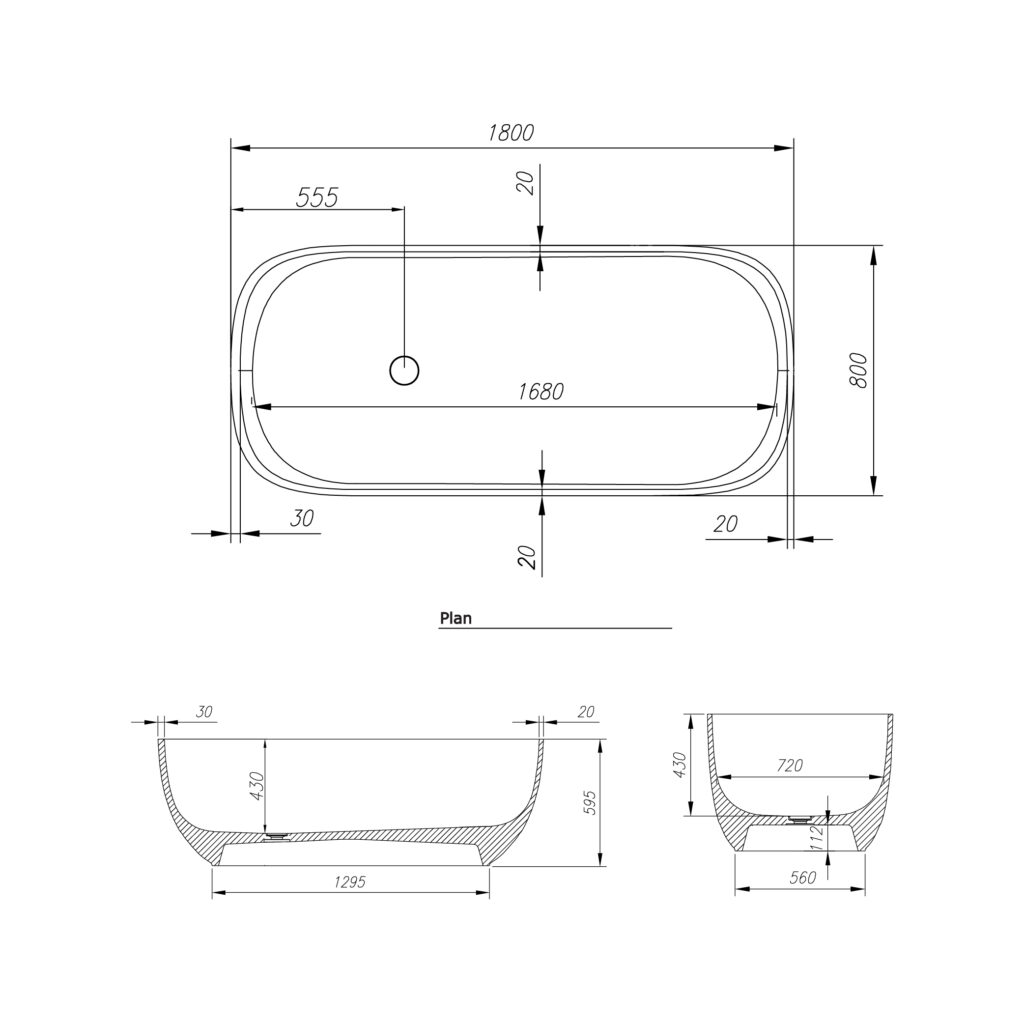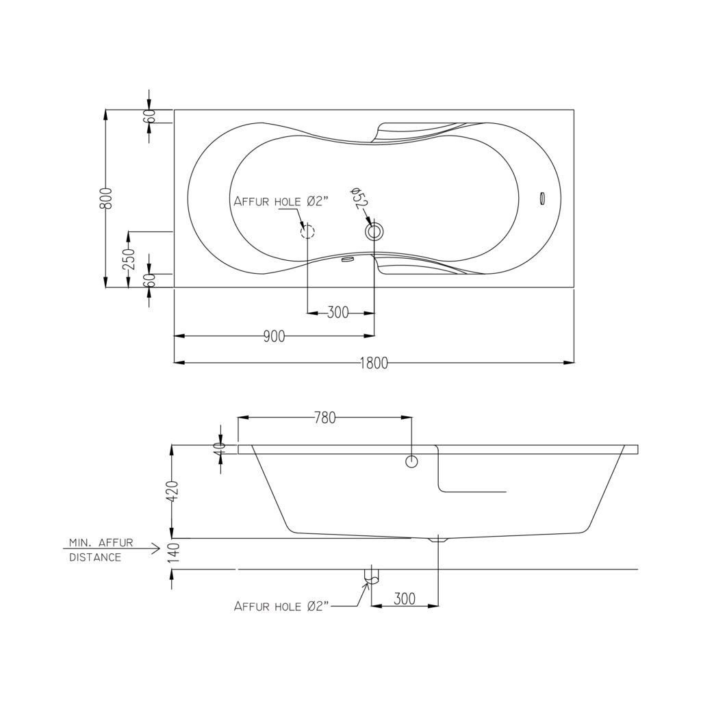 KOLPA BUILT-IN TUB 180X80CM + BATH TRAP INCLUDE OVERFLOW 1M