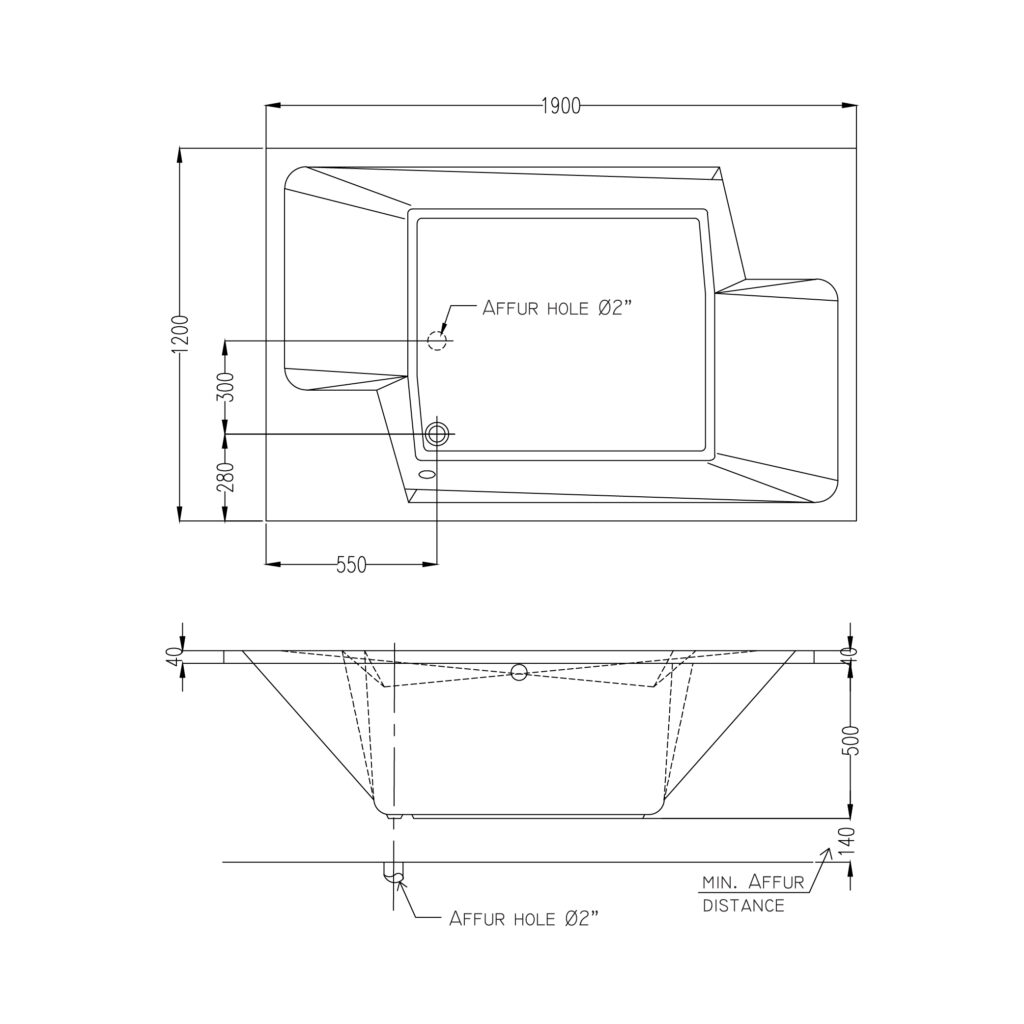 KOLPA BUILT-IN TUB 190X120CM + BATH TRAP INCLUDE OVERFLOW 1M