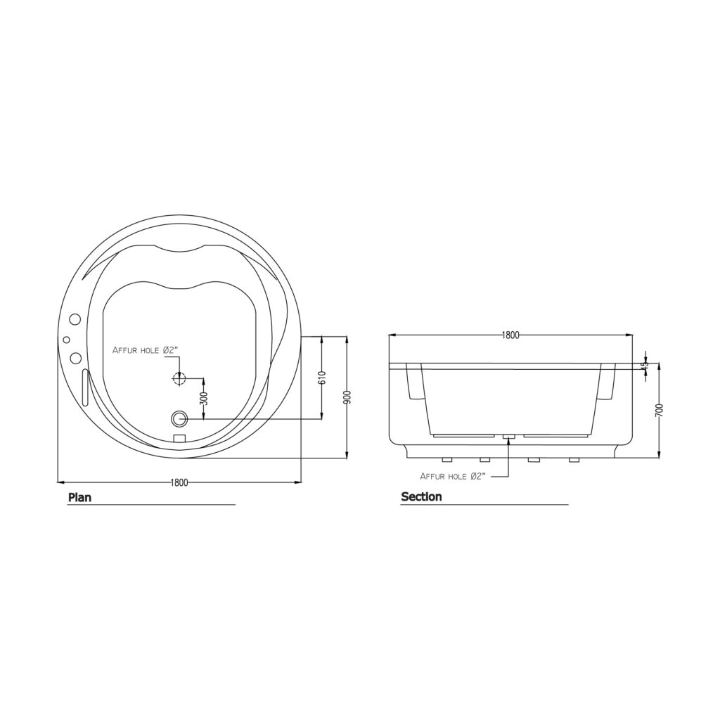 KOLPA BUILT-IN TUB d.180CM + BATH TRAP INCLUDE OVERFLOW 1M