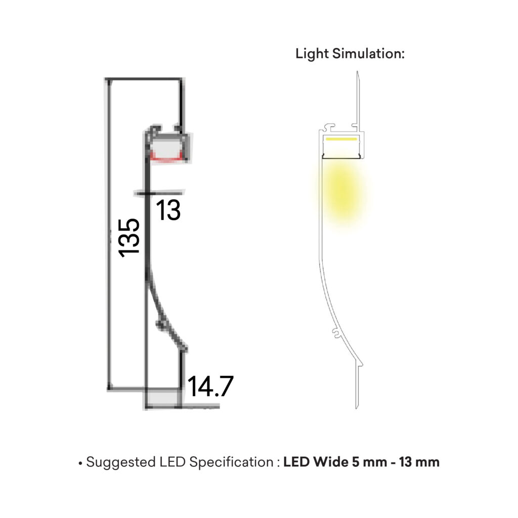 PENTALINEA ALUMINIUM LED PROFILE 135X14.7MM POWDER COATED MATTE WHITE 3M/PC