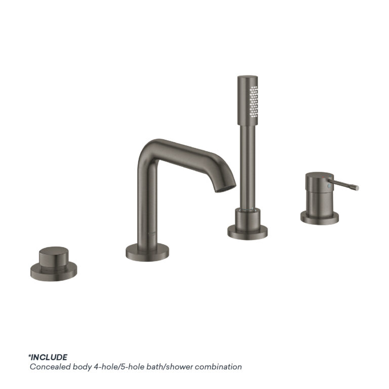 GROHE ESSENCE 4-HOLE BATH MIXER WITH CONCEALED BODY BRUSHED HARD GRAPHITE FINISH