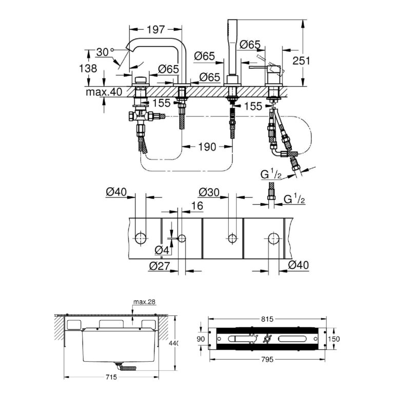 GROHE LINEARE 4-HOLE BATH MIXER WITH CONCEALED BODY