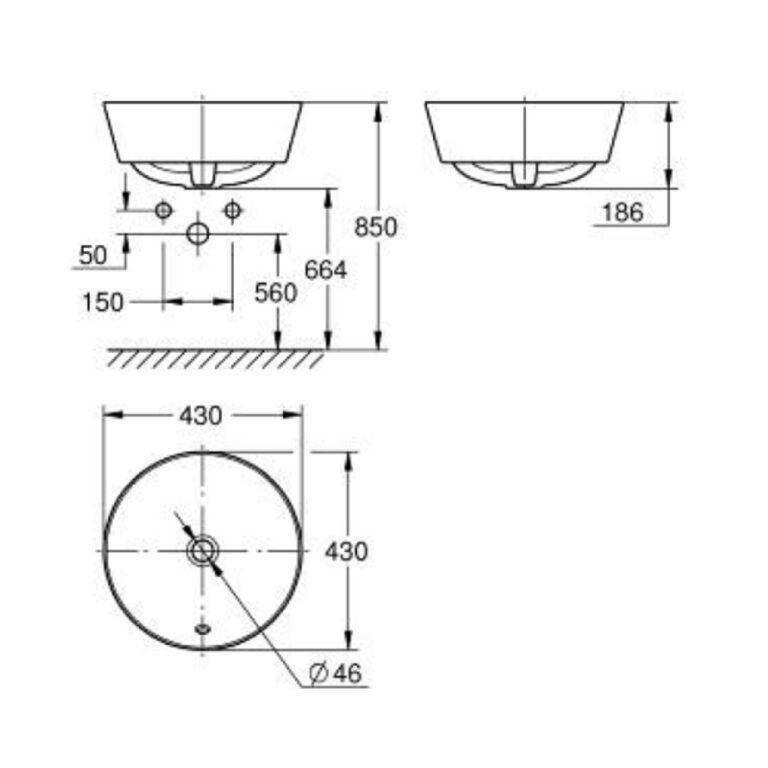 GROHE EURO CERAMIC COUNTER TOP BASIN 1H