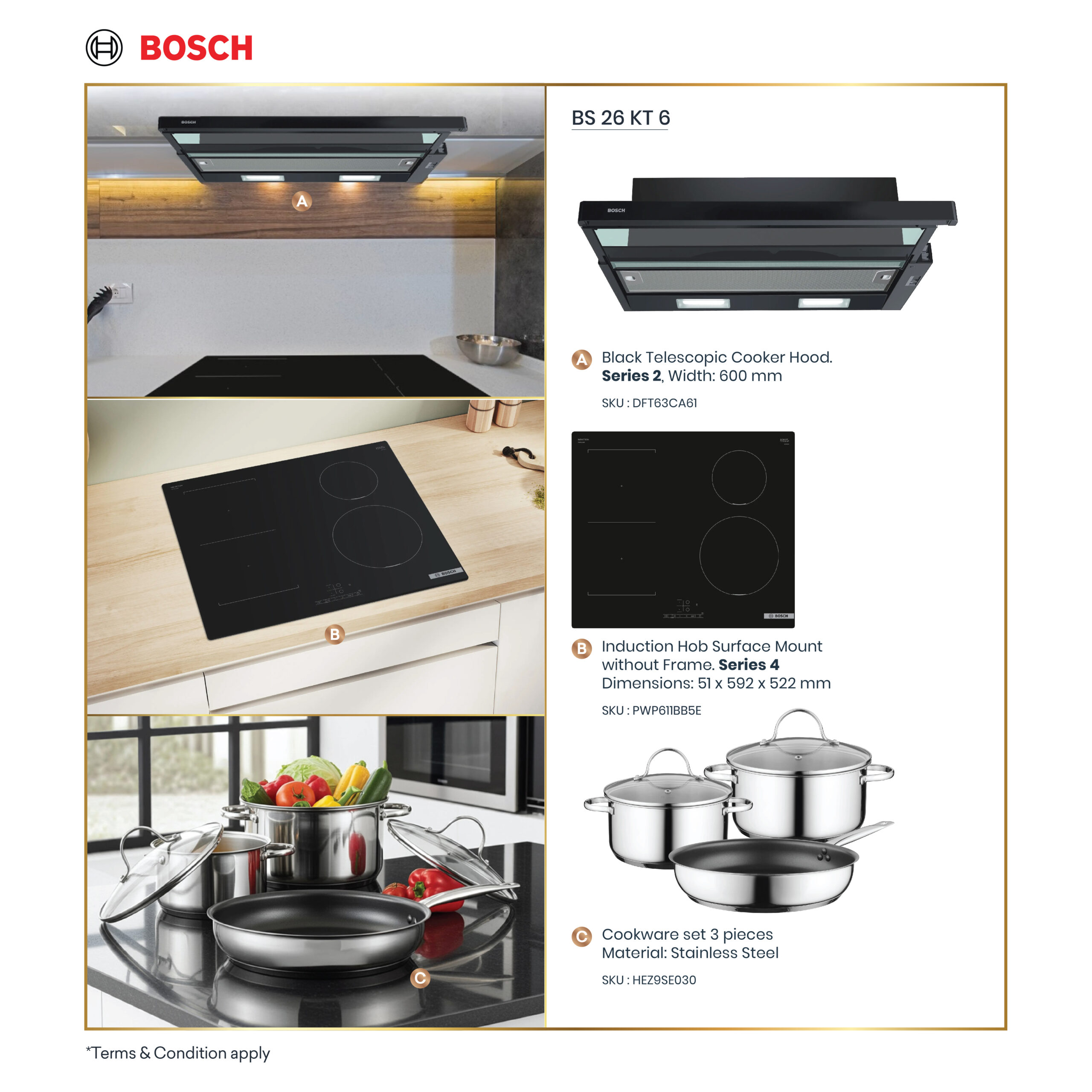 C. Cookware set 3 pieces Material: Stainless Steel, SKU : HEZ9SE030