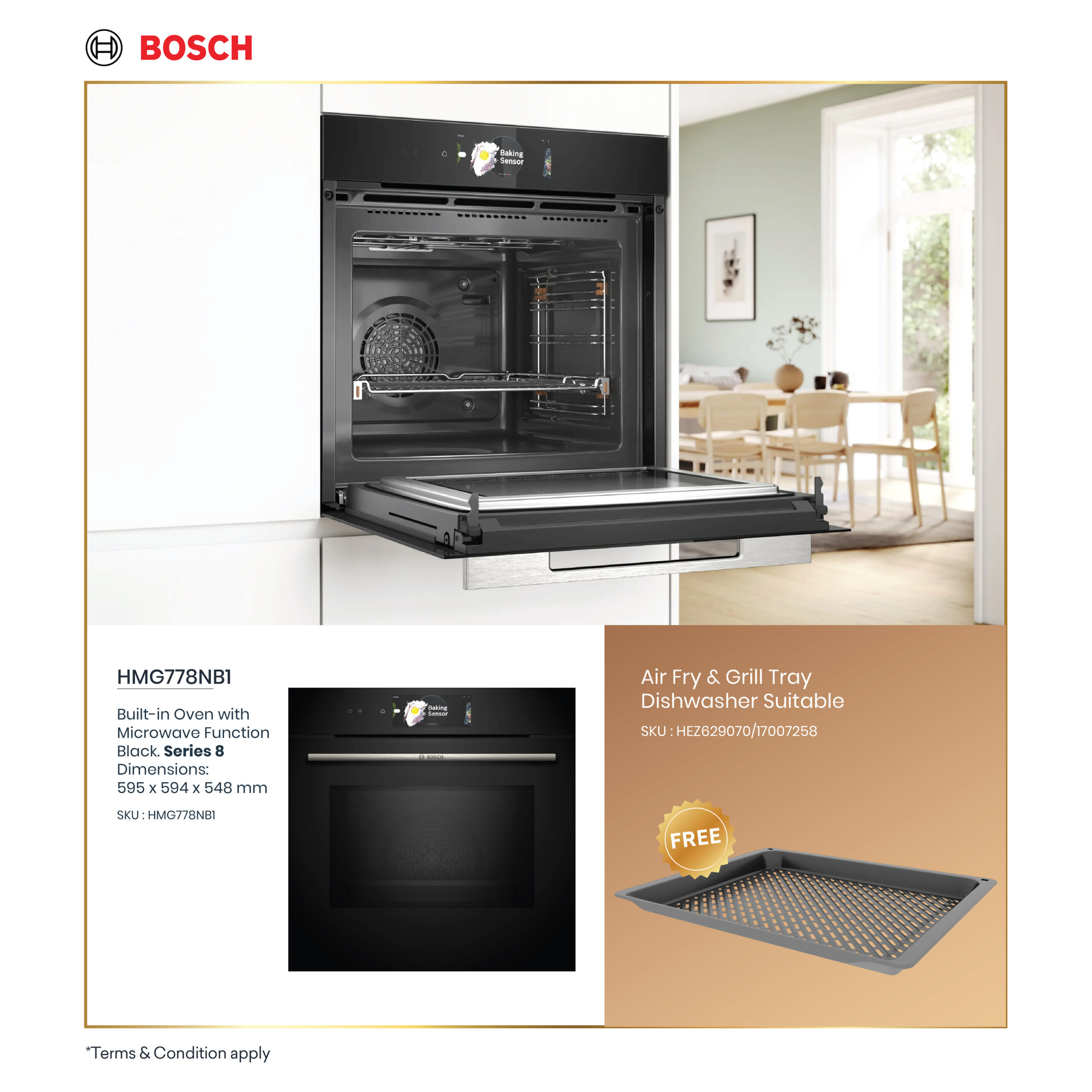 • Included accessories: 1 x enamel baking tray, 1 x combination grid, 1 x universal pan
