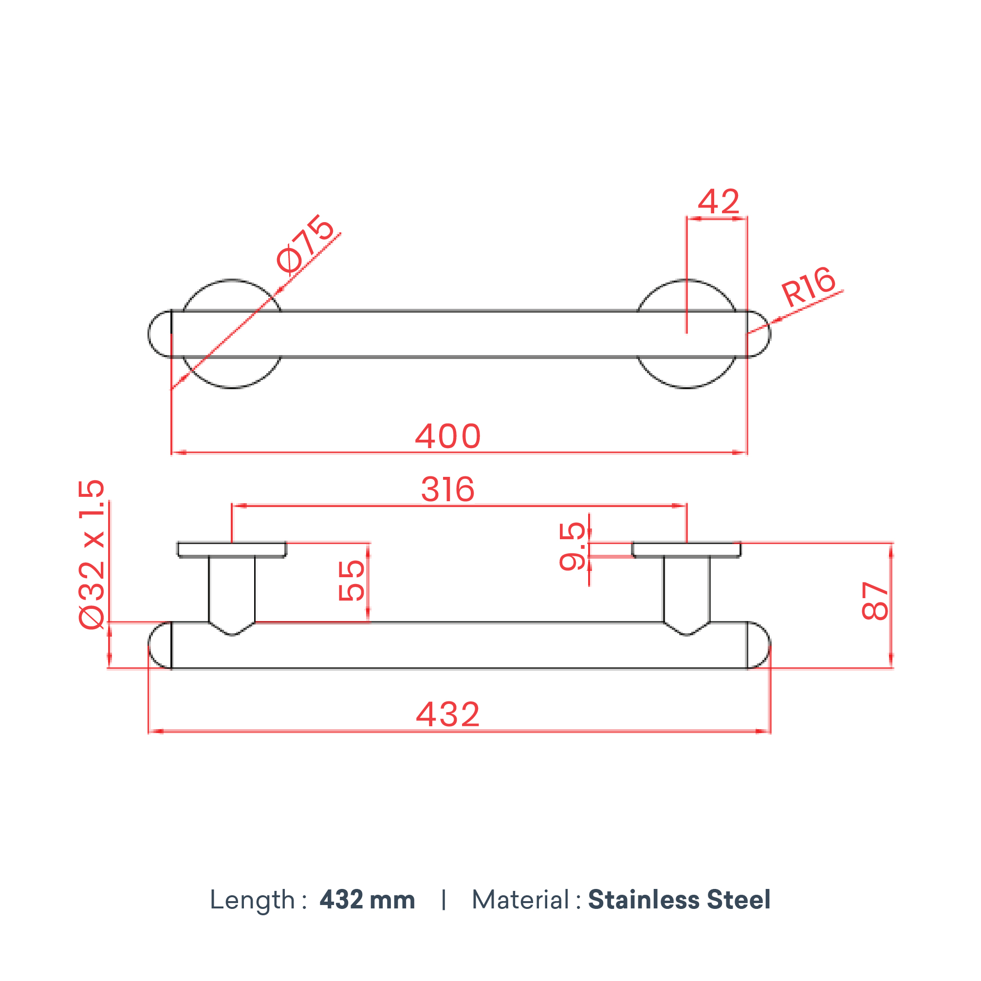 • Length : 432 mm