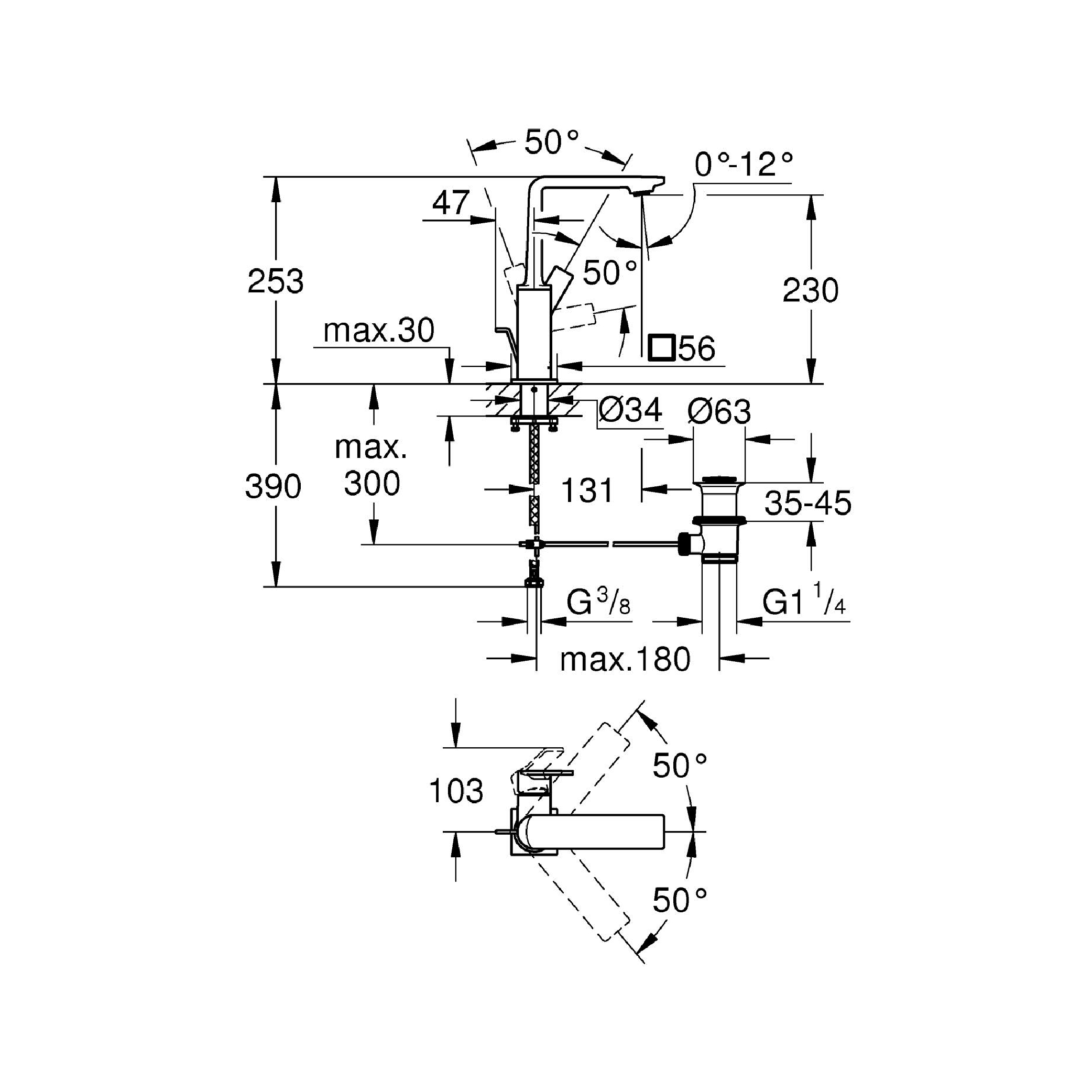 • 28 mm ceramic cartridge with GROHE SilkMove