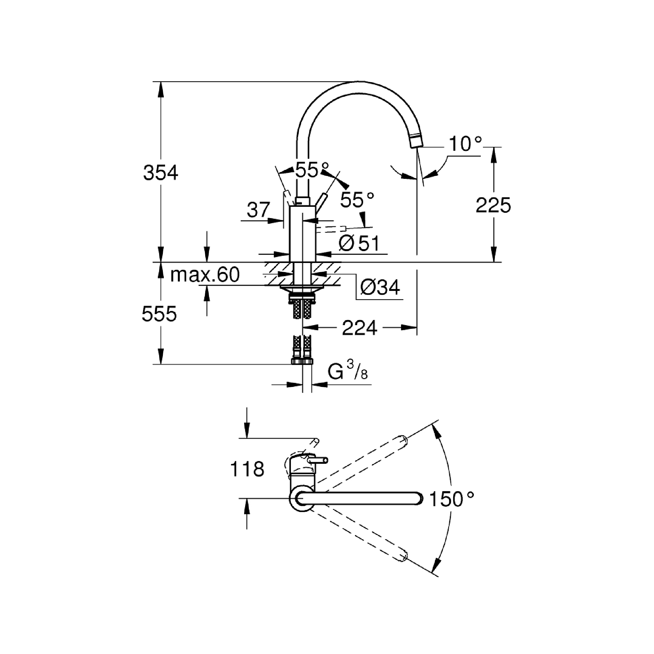 GROHE CONCETTO SINGLE-LEVER SINK MIXER 1/2″