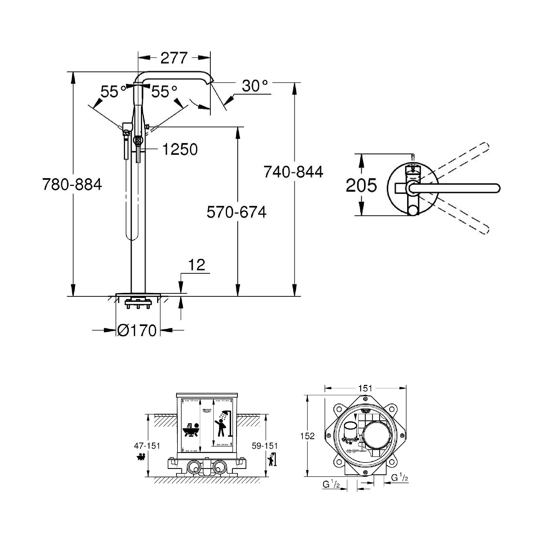 GROHTHERM SMARTCONTROL ROUND CONCEALED 3 FUNCT SHOWER SYSTEM 310
