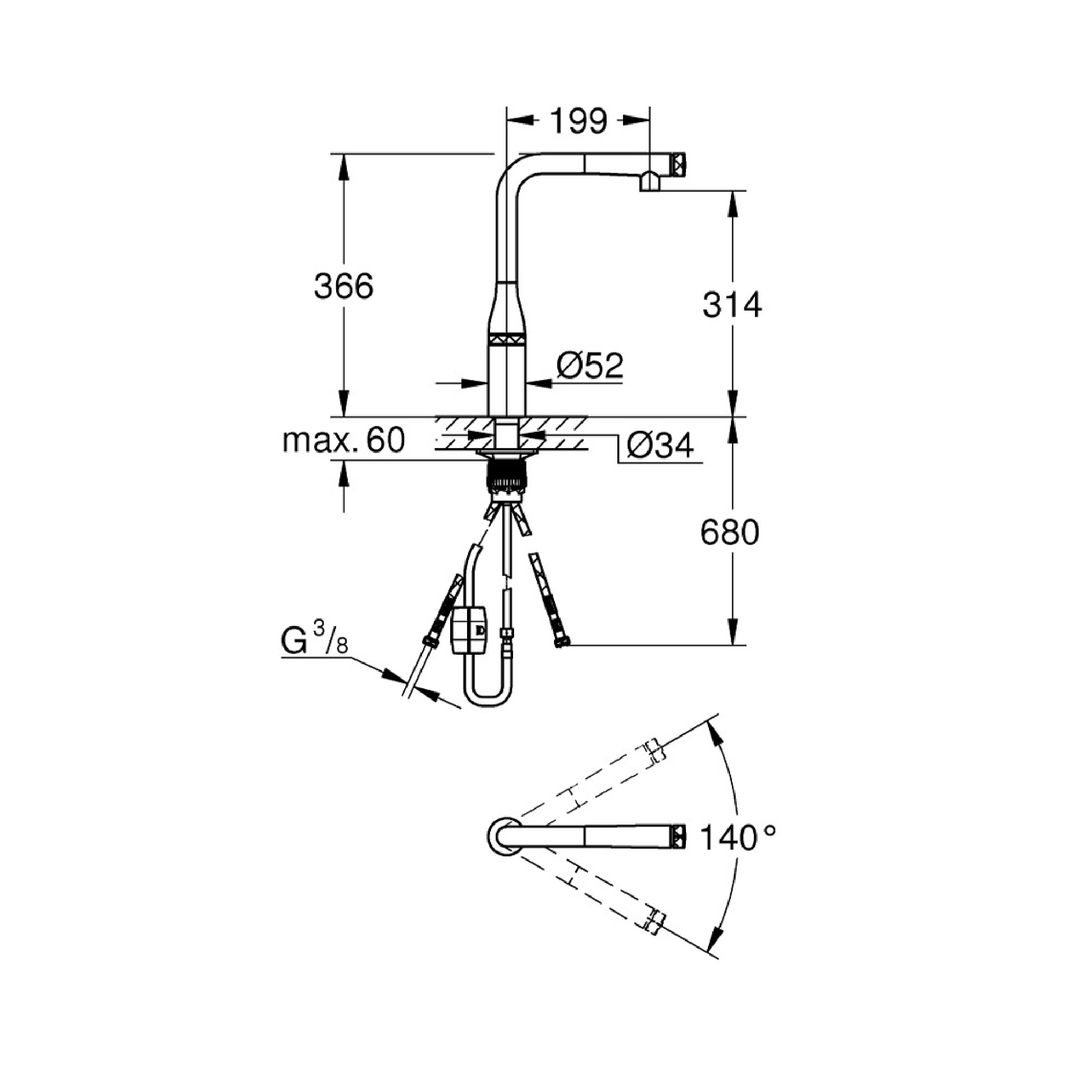 • GROHE Magnetic Docking guarantees easy retraction and smooth docking of the spray head back to the starting position