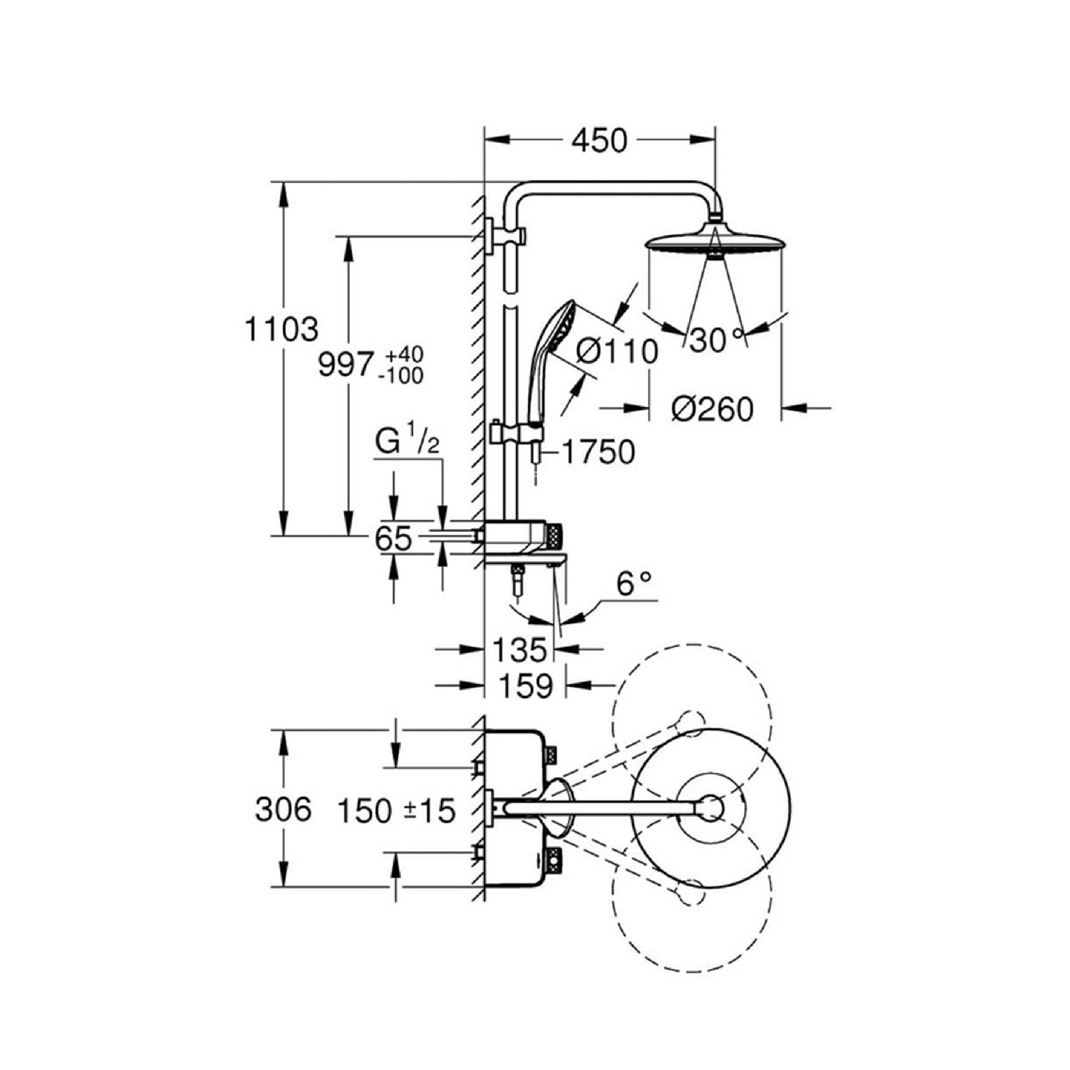 GROHE EUPHORIA 260 SHOWER SYSTEM WITH BATH THERMOSTAT
