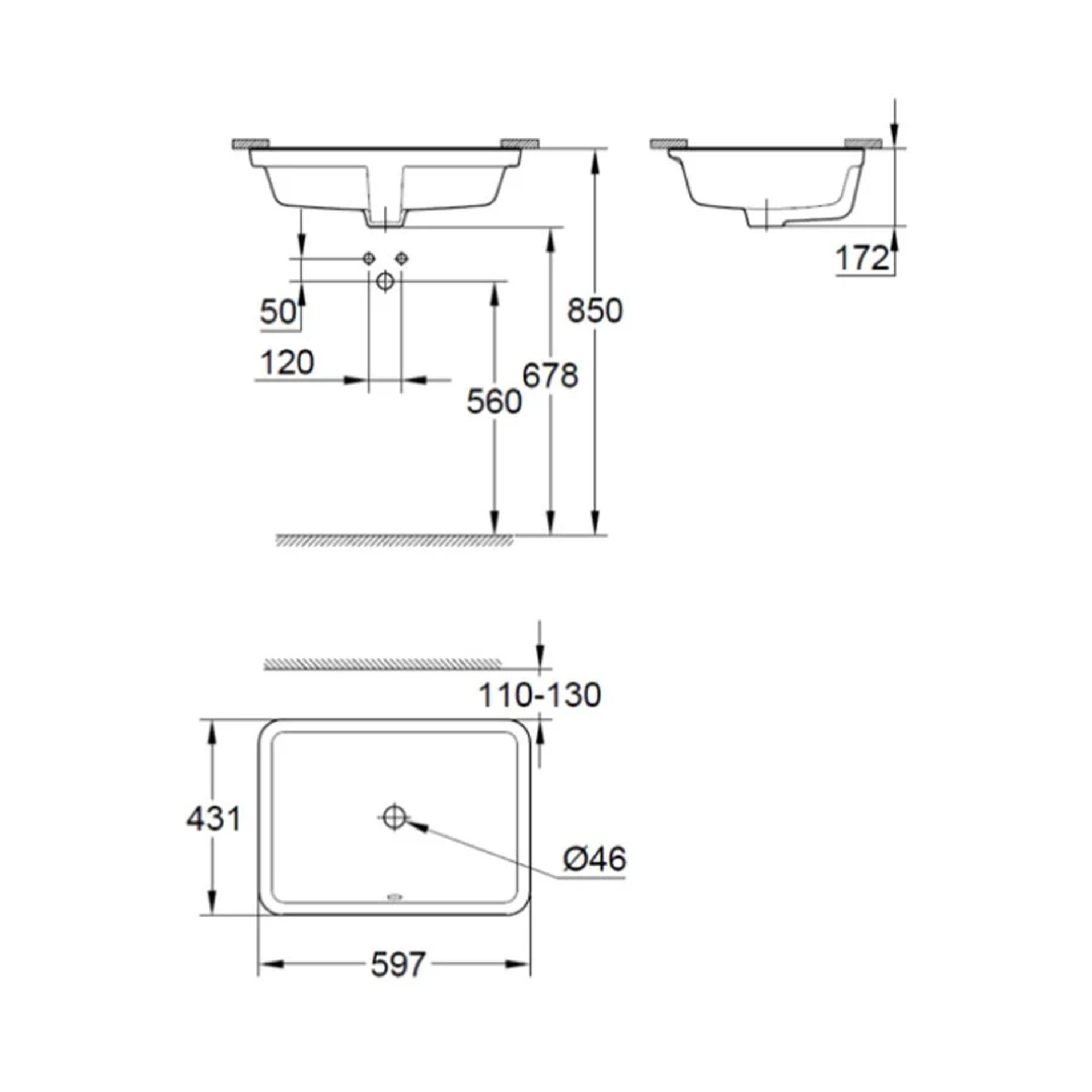 GROHE EUROCUBE COUNTER BASIN BUILT-IN 60