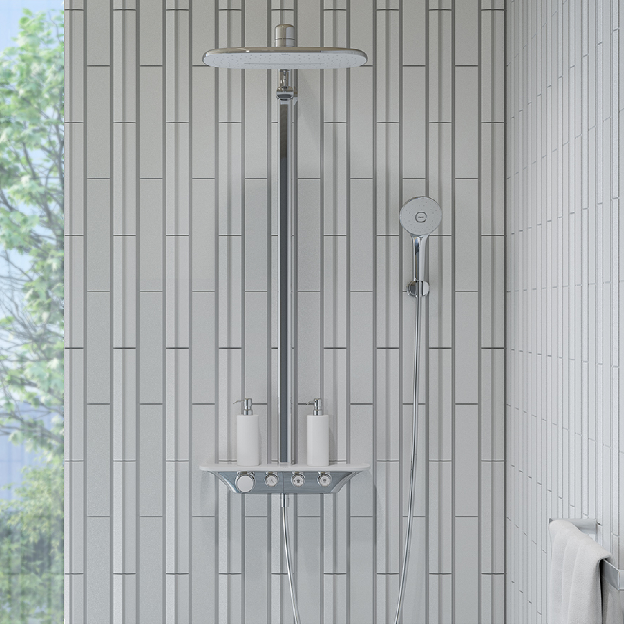 With a large overhead shower that runs two patterns of water flow, the S600 LINE intelligent control shower system is sure to give you the perfect showering experience, whether you are in the mood for quick freshening up or relaxing meditation.