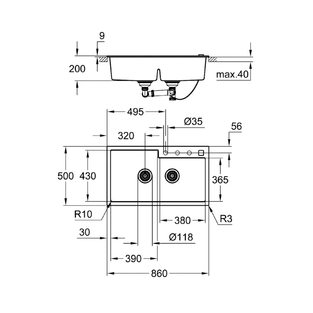 • Includes: Basket, Soap dispenser, Strainer, Trapway