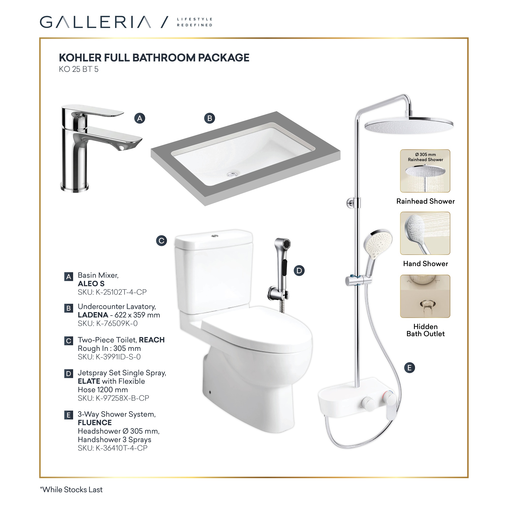 E: 3-Way Shower System, FLUENCE Headshower Ø 305 mm, Handshower 3 Sprays SKU: K-36410T-4-CP