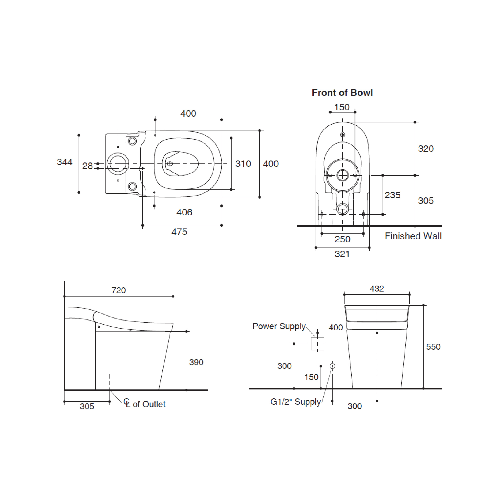 • Design: Back-to-wall design Hidden power cord & water hose