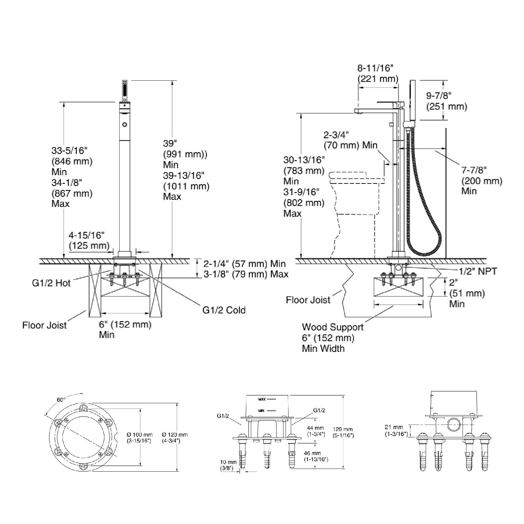 • 13.4 gpm (50.7 lpm) maximum bath faucet flow rate at 45 psi (3.1 bar)