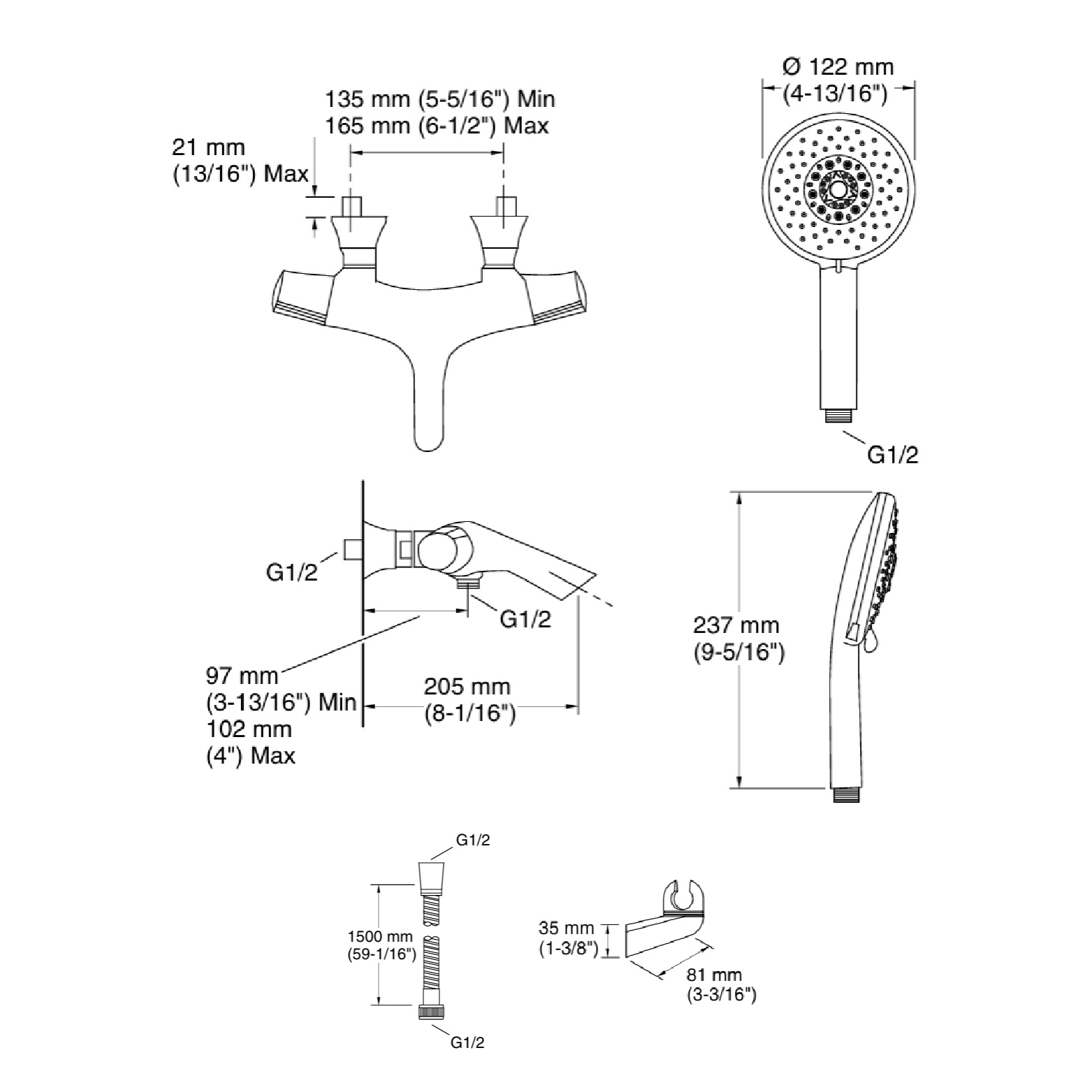 • Includes handshower