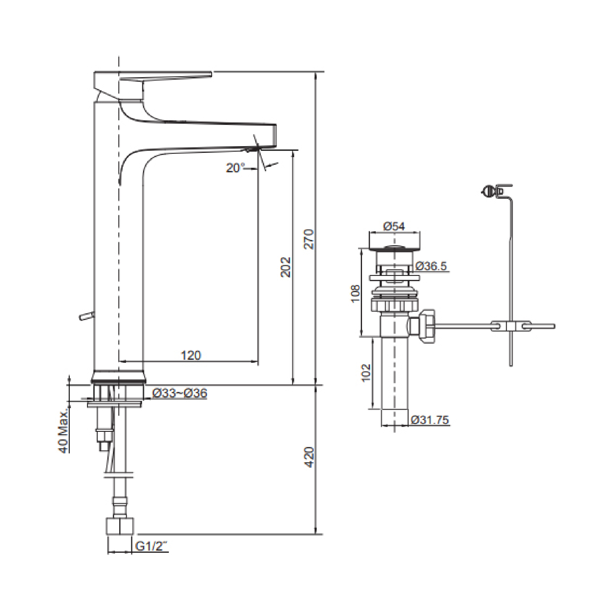 • Includes stationary spout and pop-up drain.