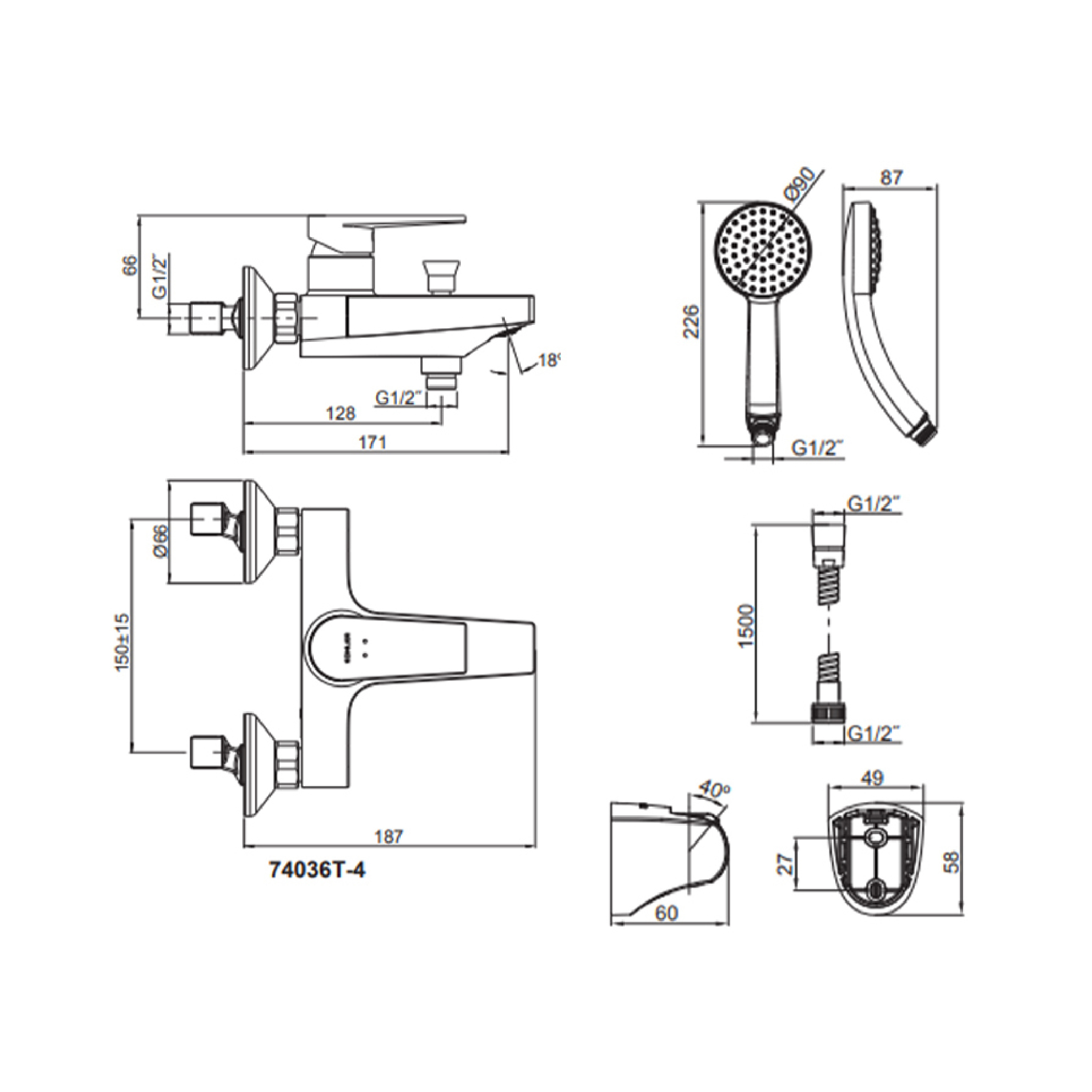 • Includes handshower
