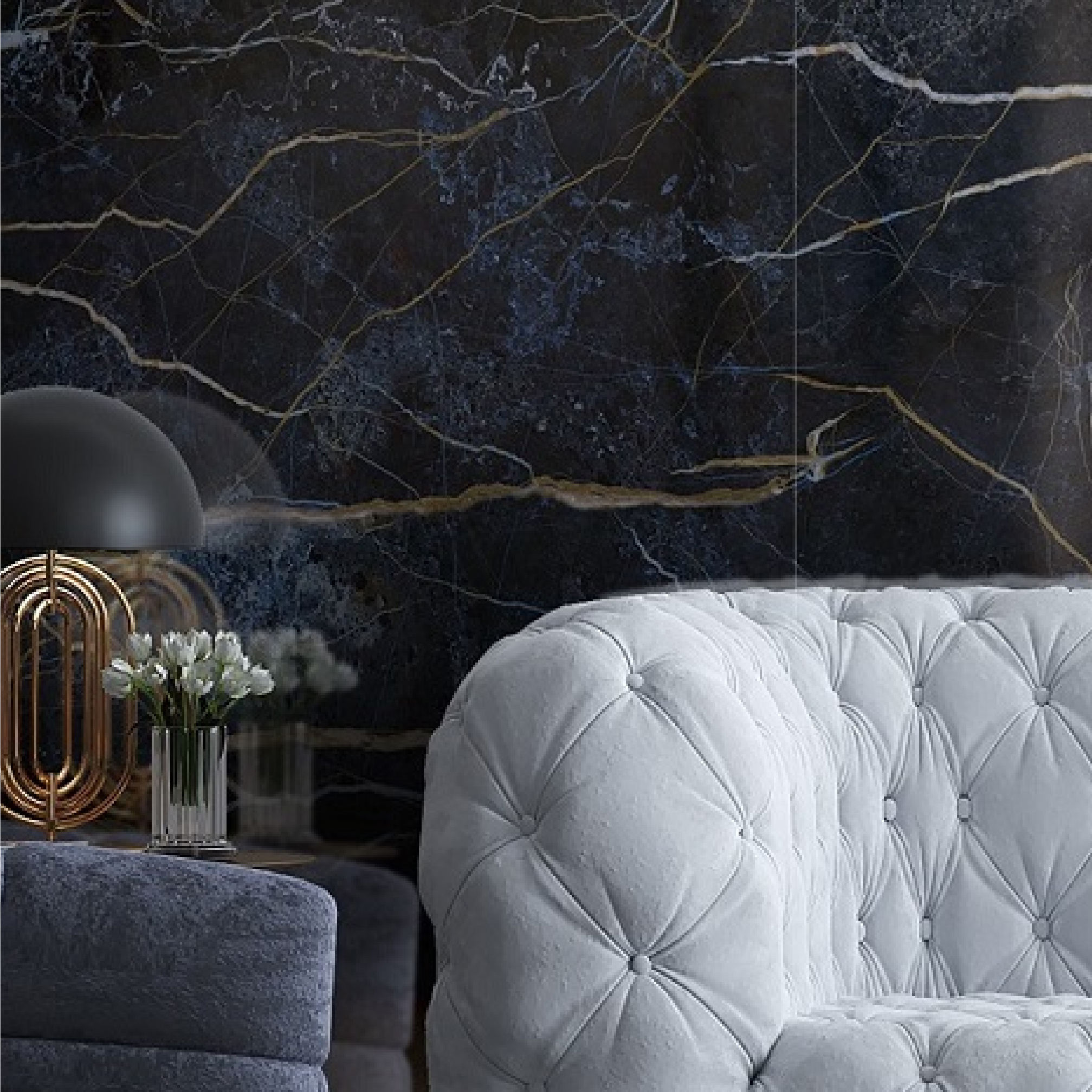 Tuono Blu captures and recreates the scene of a night of thunderstorms with a touch of elegance.