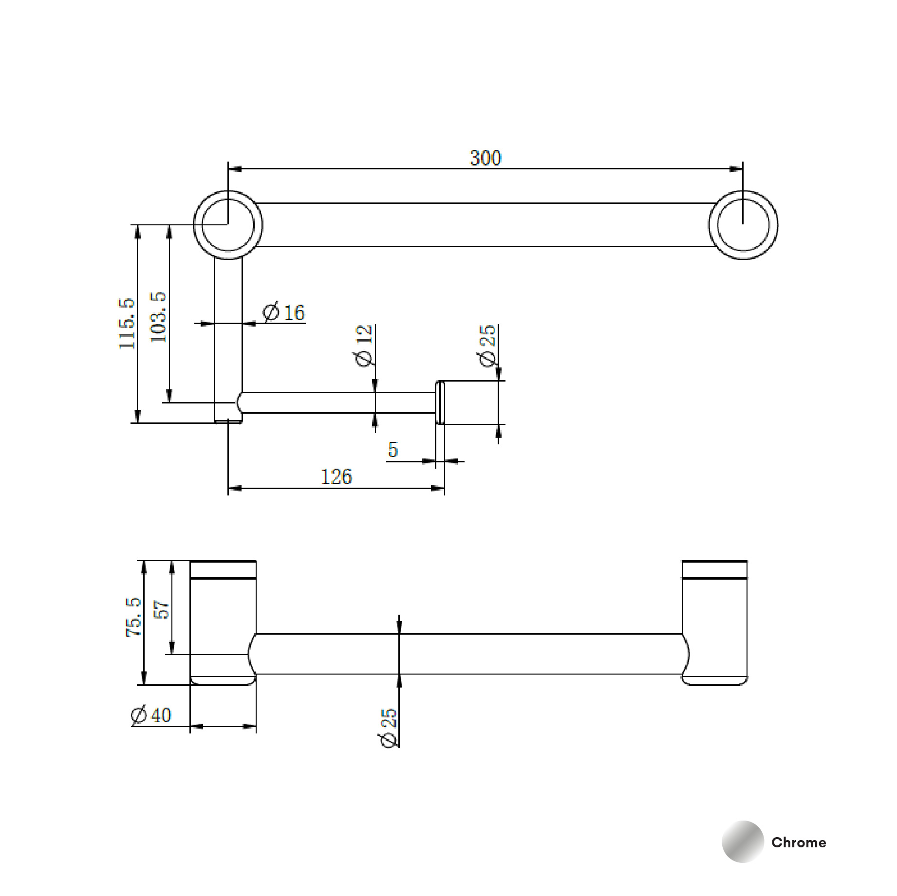 STERN KONZEPT REINE CARE 32MM GRAB RAIL WITH TOILET ROLL HOLDER 450MM