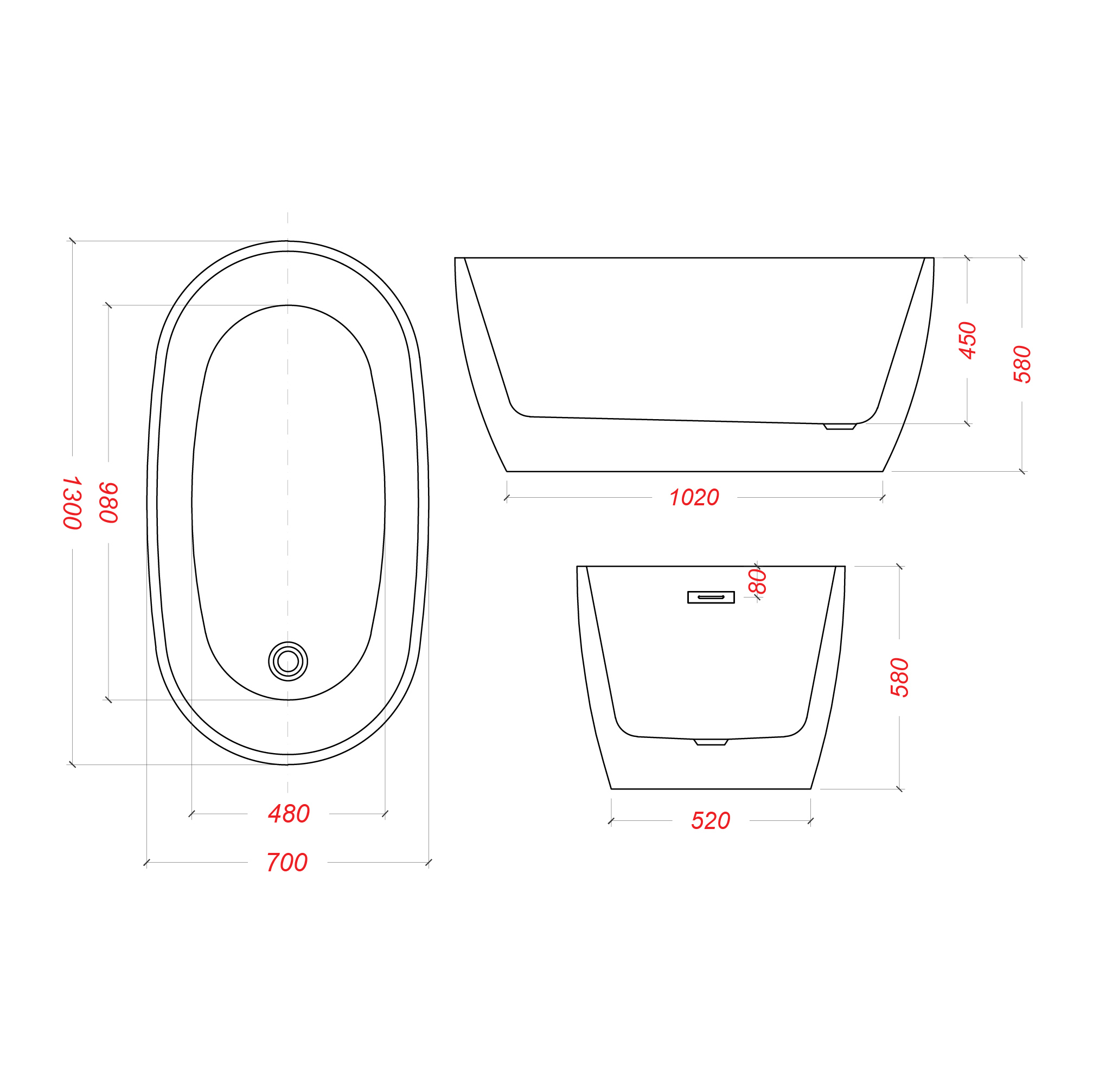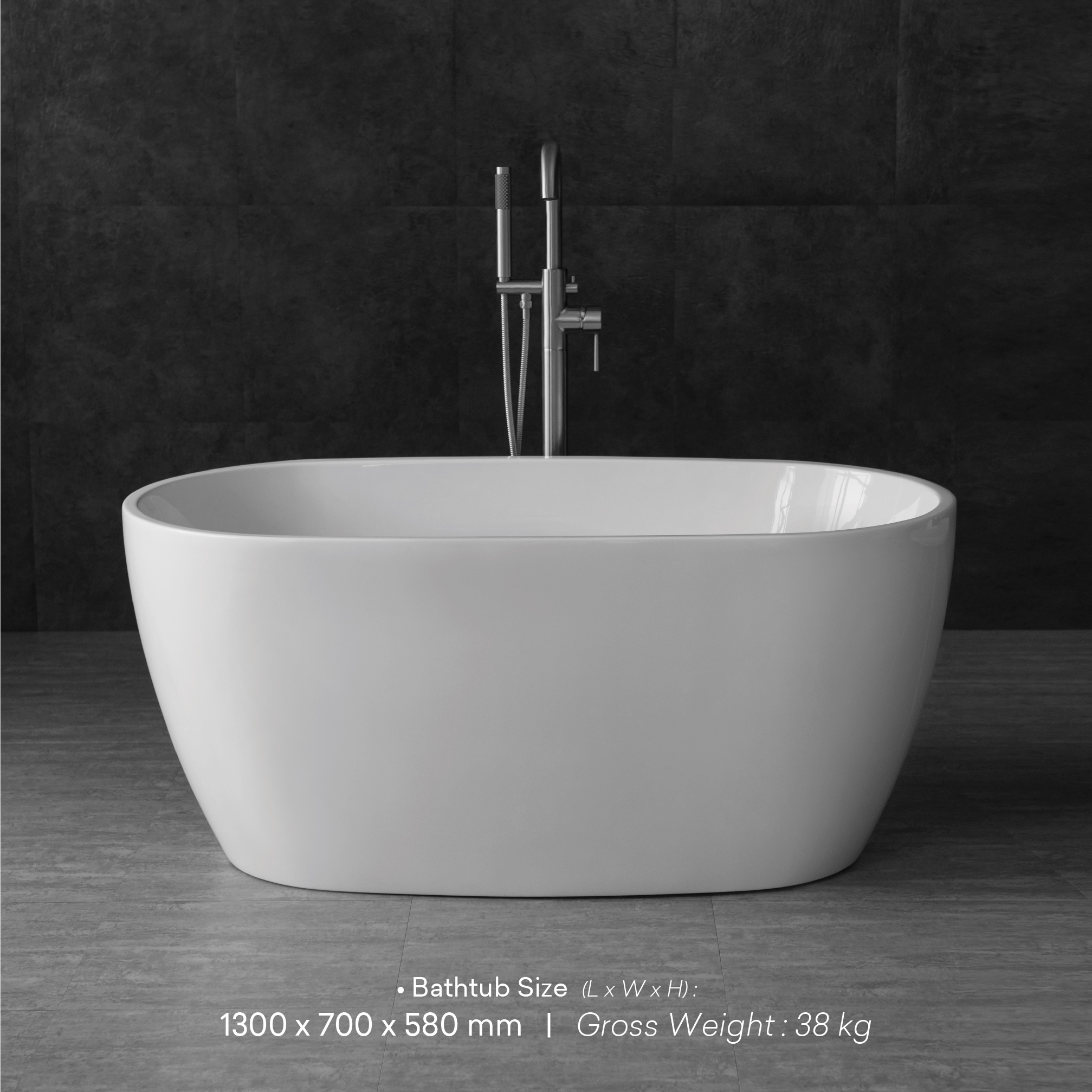 - Bathtub Size (L x W x H) 1300 x 700 x 580 mm
