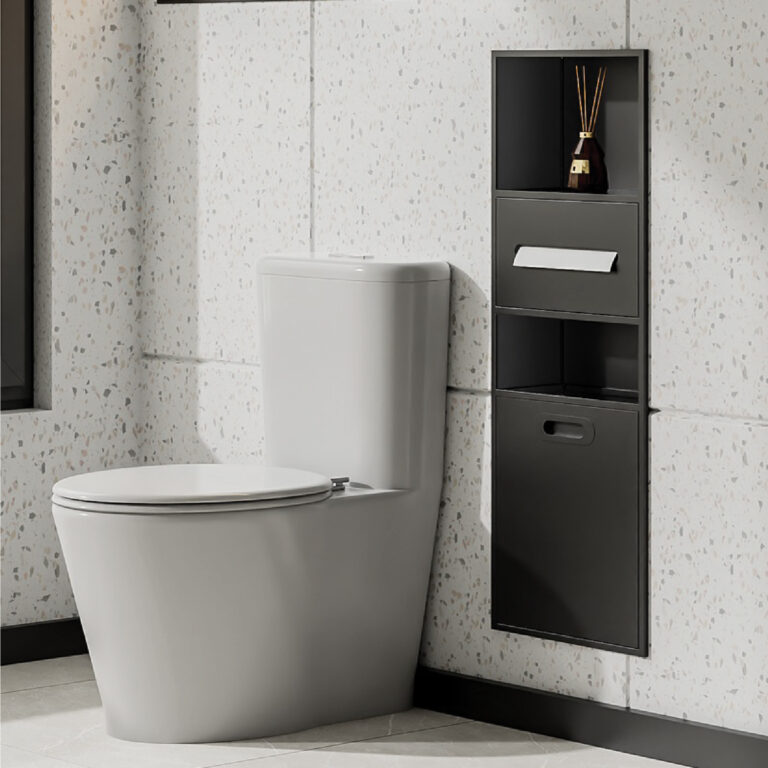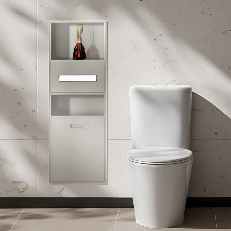 - Aksesori Ruang: Rak handuk, cermin LED, dispenser sabun, hanger, dan penyimpanan kecil lain.