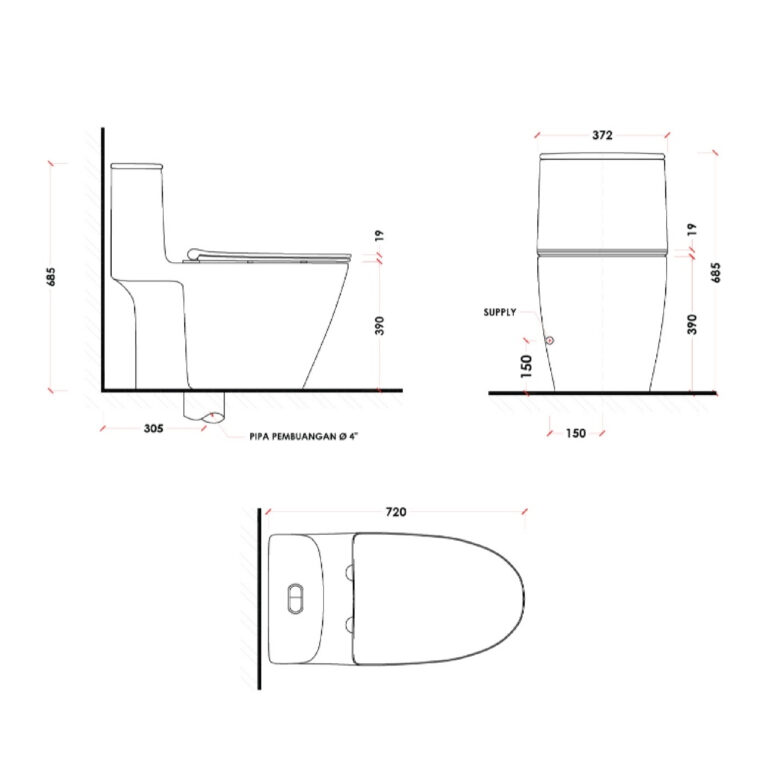 - Aksesori Ruang: Rak handuk, cermin LED, dispenser sabun, hanger, dan penyimpanan kecil lain.